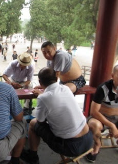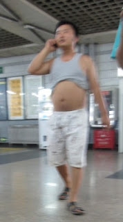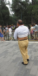 Ahora les voy a hablar de lo más divetido: La barriga de los chinos..La barrigaaa.Parece que estos señores y quizá sea por los años de hambre y necedades que han pasado, están muy orgullososo de sus barrigones. Se las tocan miemtras caminan como las embarazadas, pero peor todavía, muchos las llevan fuera,si si, fuera… miren las fotos. Te los ves en cada esquina presumendo de barriga o más bién, barigones…