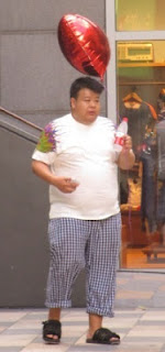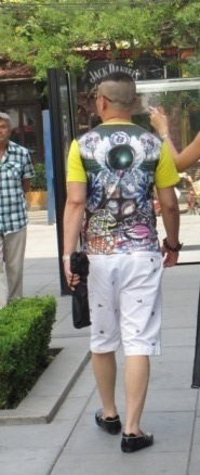 En fin, corramos un tupido velo y hablemos de la ropa, porque los hombres al igual que las mujeres no tienen ni la más remota idéa de cómo combinar prendas, colores, tejidos o estampados. Incluso tengo la impresión de que muchos hombres usan ropa de muejeres, ya que veo a muchos con blusas y camisetas de flores ,estrellitas o machanguitos, algunas con brillos y lenejuelas.No se aprecia en las fotos , pero los tienen, y no es porque vayan a la moda, se nota
