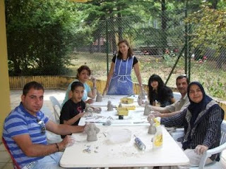 Llevamos ya casi 6 meses en Ankara y por fin, los últimos 2 meses he podido empezar mis actividades de cooperación. He estado dando un curso de cerámica a los refugiados en la embajada del vaticano en , donde los jesuitas tienen un centro de ayuda a un nutrido grupo de familias desplazadas desde Irán, Irak, Afganistan, Palestina e incluso Jordania. Muchos de ellos son Cristianos que huyen de la represión, pero otros están en Ankara por motivos políticos o ideológicos. Su situación en Turquía no es fácil, ya que han de llegar y solicitar asilo como refugiados, registrarse en la policía e ir a firmar 2 veces por semana, solicitar el estatus de refugiado a la ONU y esperar a que se los concedan……., normalmente unos 9 meses, y después solicitar asilo en un tercer país,( Usa, Canada, Autralia, norte de Europa) y esperar otra vez a que se los concedan, total que pueden pasar aquí desde 1 año a 2 o 3 y todo ellos sin tener permiso de trabajo, no conocer el idioma, y tener que pagarse la manutención y los permisos de residencia en este país. Especialmente los Iranies, parece que tienen grandes problemas, porque además, no se fían los unos de los otros, con lo que no se agrupan como suelen hacer otras comunidades extranjeras en nuestros países, esto contribuye a su aislamiento y depresión. En España, estamos acostumbrados a los inmigrantes, pero ser refugiado no es lo mismo, los refugiados se ven forzados al exilio por miedo a perder sus vidas…….